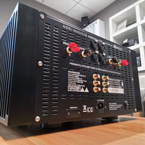ABSolute… l’essence de cet amplificateur intégré est parfaitement révélée dans son nom. Le projet le plus ambitieux d’Audio Analogique après plus de 25 ans d’histoire et certainement la meilleure façon de célébrer un anniversaire aussi important. Un amplificateur unique qui donne la possibilité de profiter du raffinement du son pur de classe A ou la puissance de la classe AB en appuyant simplement sur un bouton. Composants audiogrades de la plus haute qualité niveau et sélectionné pour optimiser les performances de l’amplificateur dans les deux modes d’utilisation. Des formes massives, qui allient à l’extrême la propreté et l’élégance du design solidité, caractérisée par les dissipateurs lourds usinés dans le solide, qui en plus d’être les pièces uniques sont un parfait exemple de l’excellence de l’artisanat Made in Italy. Puissant, polyvalent, raffiné, extrêmement musical… tout cela est ABsolute, un amplificateur qui crée une nouvelle référence dans le monde de la haute fidélité haut de gamme.