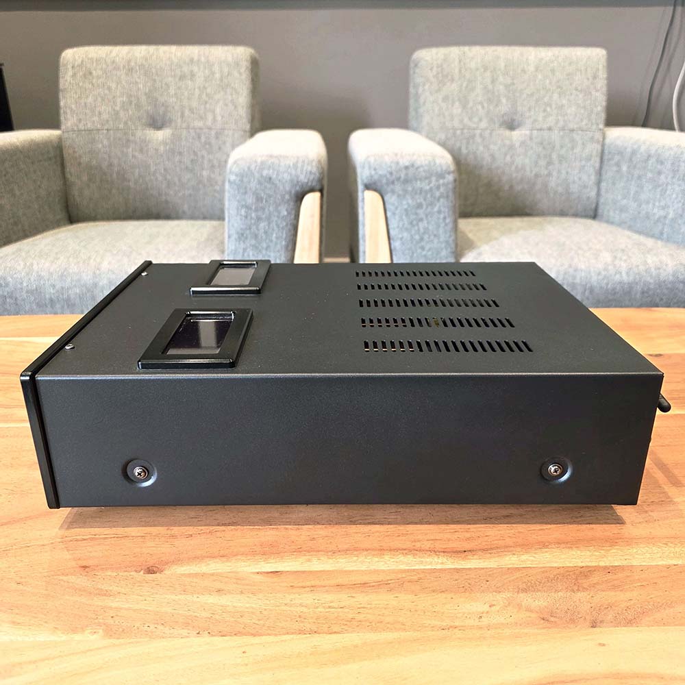 Cet amplificateur hybride au gabarit compact développe 2 x 50 Watts sous 8 Ohms. Sa technologie hybride lui apporte un timbre très particulier avec une consistance sonore qui ne laisse pas indifférent.