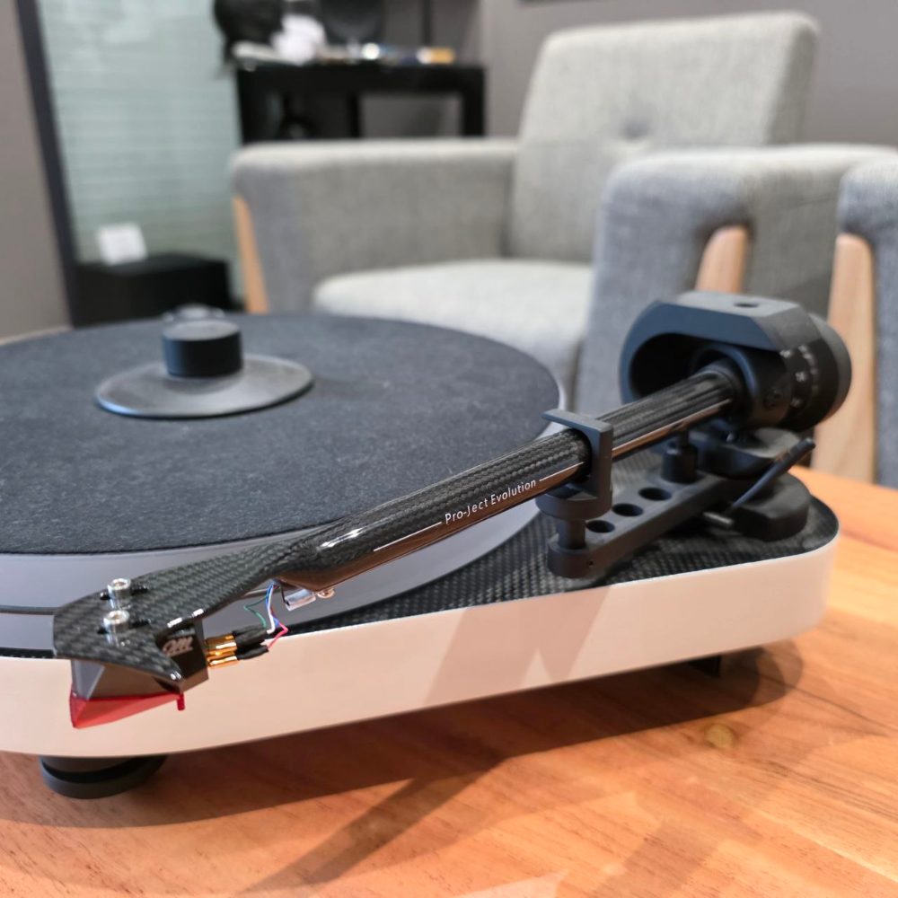 La RPM5 succède à la RPM4 – un best-seller – en montant encore en gamme tout en conservant un prix très accessible. Le socle particulièrement lourd et inerte est posé sur pieds, amortissant ainsi les vibrations. Ces pieds permettent aussi un réglage fin de l’horizontalité. Le bras en carbone (9C), déjà présent sur le modèle haut de gamme RPM-9, offre une lecture nerveuse et sans faille avec les meilleures cellules. Ses paliers en saphire – une technologie issue de l’industrie horlogère – offrent une résistance minime au frottement. Le moteur suspendu et la transmission par courroie garantissent un niveau de rumble extrêmement bas (-70 dB) pour profiter au mieux de toute la dynamique des cellules de haut-niveau. La platine vinyle Pro-Ject RPM-5 est livrée en standard avec la cellule Ortofon 2M Red dernière génération.