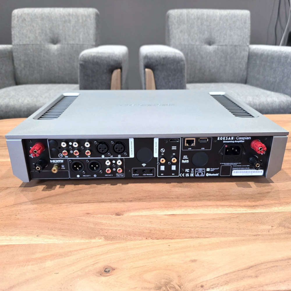 La face arrière de l’ampli hi-fi Roksan Caspian 4G BluOS adopte une connectique complète pour facilement y associer toutes vos sources. La section numérique se compose de deux entrées optiques, de deux entrées coaxiales, d’un port USB et d’un port HDMI eARC. Pour convertir les signaux, l’ampli Roksan Caspian 4G BluOS exploite la technologie DAC Rapture avec système à courant différentiel afin d’extraire davantage d’informations, assurant ainsi une reproduction plus précise et détaillée. Ainsi, le DAC offre une bande étendue et un plus grand respect des nuances, permettant ainsi de tirer le maximum des musiques haute résolution jusqu’à 24 bits / 192 kHz.