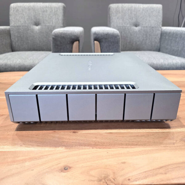 L’étage de puissance de l’ampli Roksan Caspian 4G BluOS fonctionne en classe AB, gage d’une très grande richesse harmonique et d’une reproduction naturelle. Il est capable de fournir une très forte puissance de 2 x 105 W sous 8 ohms et de 2 x 200 W sous 4 ohms. De plus, le puissant transformateur torique de 600 VA s’associe à des condensateurs pour porter la capacité en courant à plus de 36 400 uF, gage d’une reproduction dynamique et très bien équipée, même avec des enceintes exigeantes.