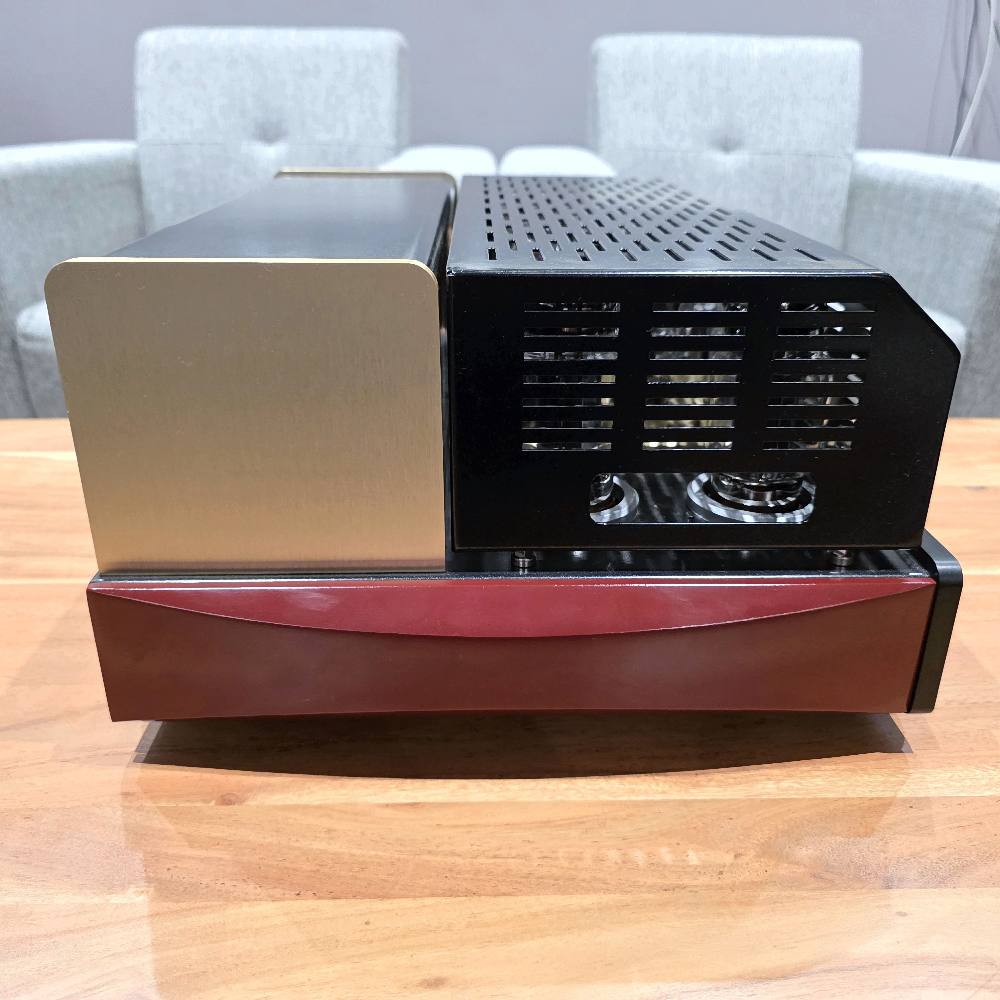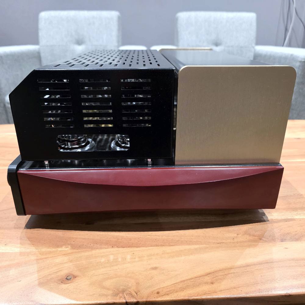 En façade on trouve quatre interrupteurs rotatifs: un pour la mise sous tension On/Off, un pour le volume, un pour le sélecteur de source et un pour le sélecteur de réglage de bias. Ceux-ci sont associés au vu-mètre trônant au milieu de la façade qui indique le réglage de polarisation du tube sélectionné.
