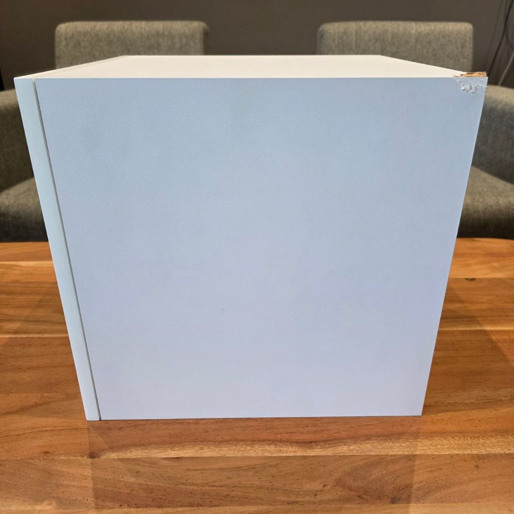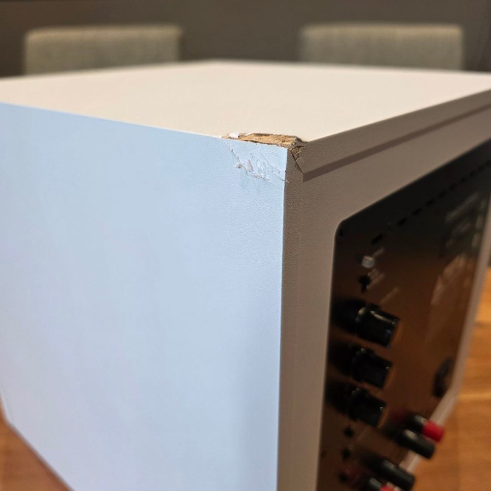 Matériel Stock B, finition blanche, avec coin abîmé.