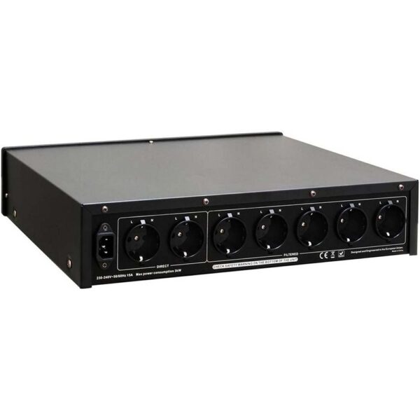 Côté puissance, le PF 2000 est conçu pour supporter des charges importantes, typiques des systèmes audiophiles haut de gamme ou des installations home cinéma avec composants gourmands. Le boîtier est bien ventilé, construit en métal solide, avec des câbles secteur robustes, souvent détachables, pour faciliter le remplacement ou la mise à niveau. L’appareil est stable, durable, et vise à fournir un fond de bruit très bas, avec une plus grande définition dans les graves, une meilleure séparation stéréo, et une réduction des interférences audibles.