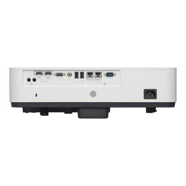 Côté connectivité, ce projecteur est conçu pour s’intégrer facilement à des installations complexes. Il propose deux entrées HDMI, un port HDBaseT pour transmettre vidéo, audio et réseau via un seul câble, des entrées vidéo analogiques et des interfaces réseau. Ce large choix facilite l’utilisation avec différents équipements.